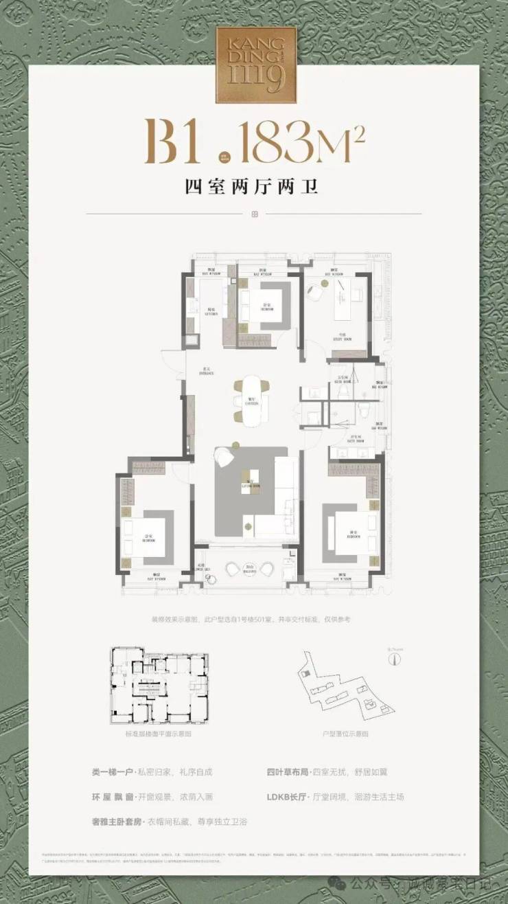 最新信息:康定壹拾玖即将清盘,目前还有少量房源,建面约177-238㎡3-4房,均价17.18万/㎡,可直接落位!