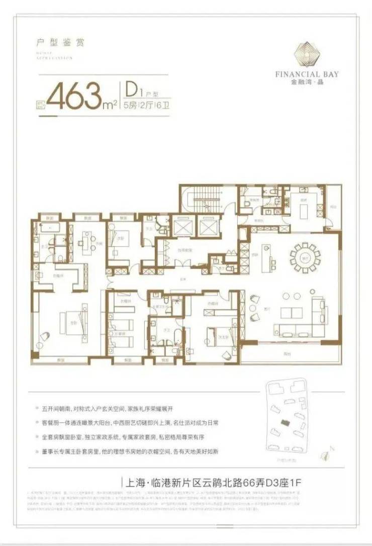金融湾·晶直面百万方城市综合体,坐拥家门口的城市绿环、购物中心,以天幕之境匠心结晶,勾勒醉美滨湖天际线,以一环二园三水四景,营造绿岛都会湖居谧境,在湖海相逢的烫金之处,盛放澎湃人生。临港金融湾之上的国际金融住区,以one&only的环湖首排臻席,仅为少数人所争藏。