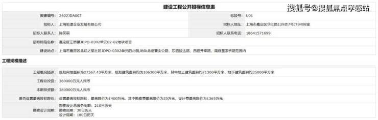 公示发布后不久,上海市建设工程交易服务中心随即发布了该地块的建设工程公开招标信息。