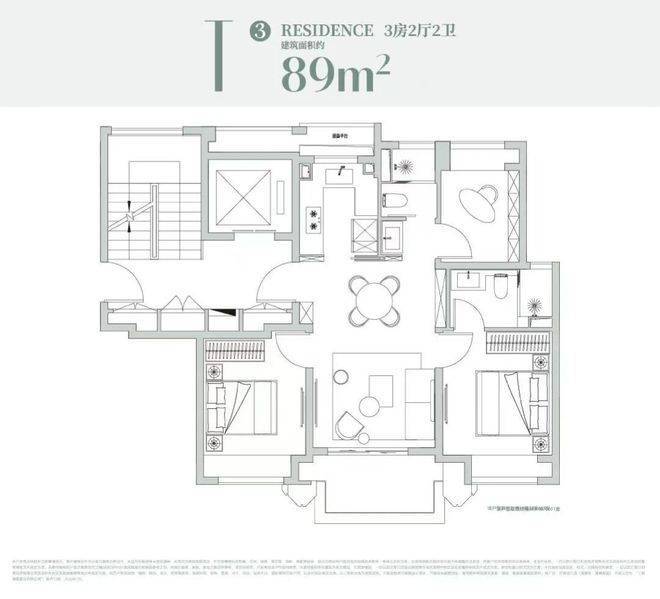 约99㎡户型设计:经典飞机户型格局!独立观景阳台!