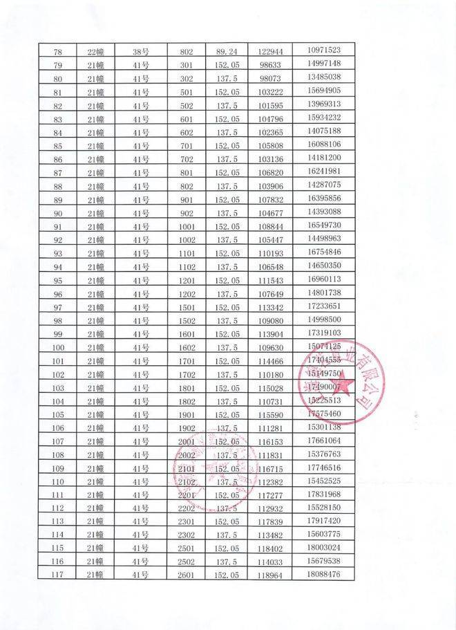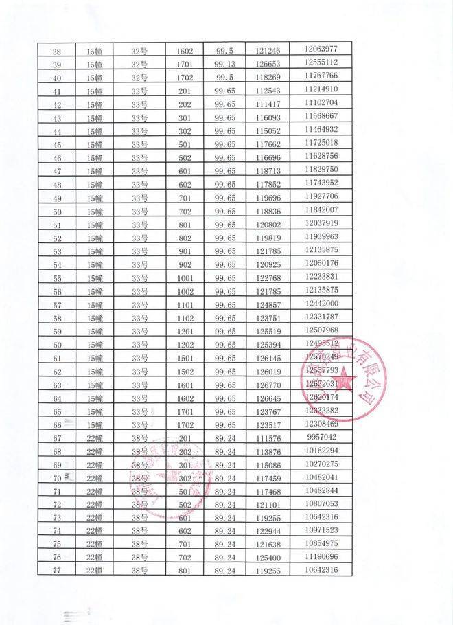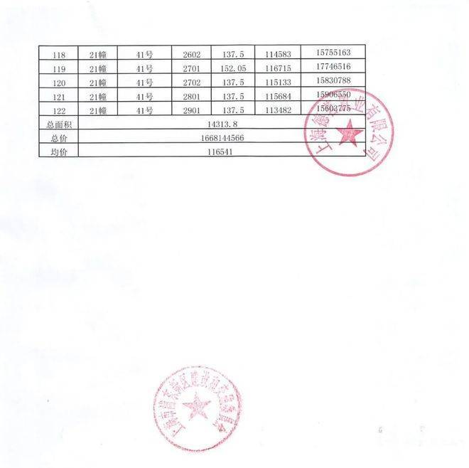 一房一价表: