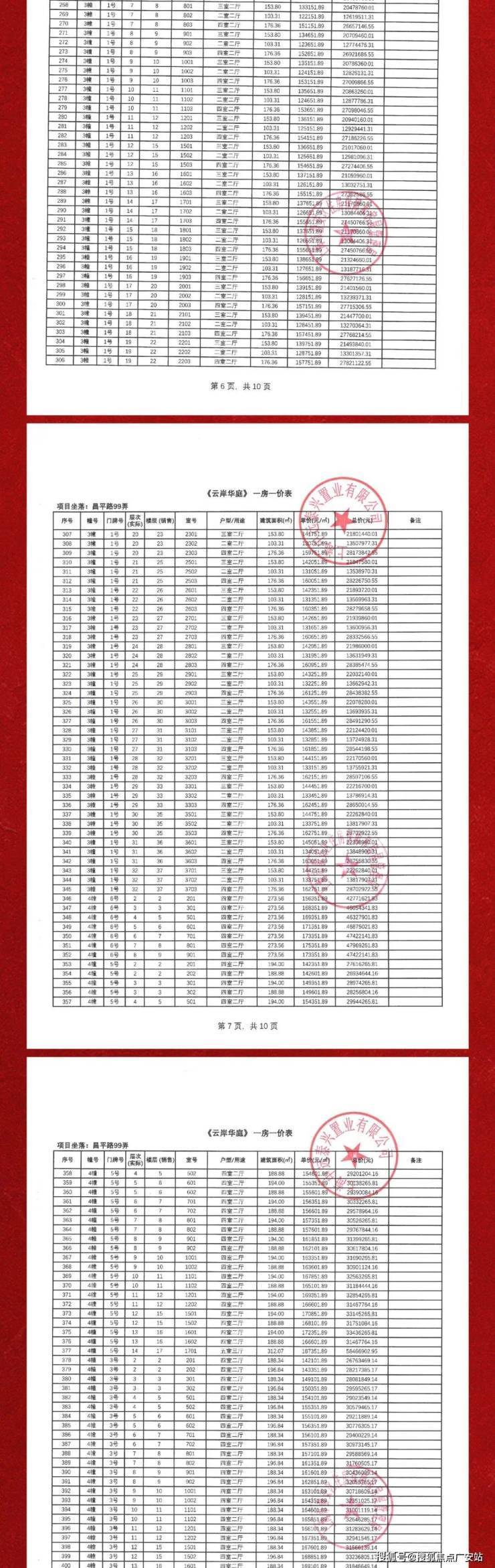 一房一价表如下