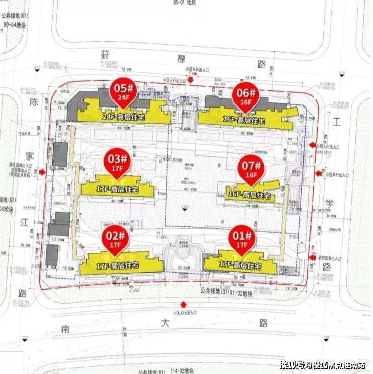 根据设计方案显示,该地块拟建5幢16-17F高层住宅、1幢24F高层住宅以及若干社区配套用房,共计规划约436户。
