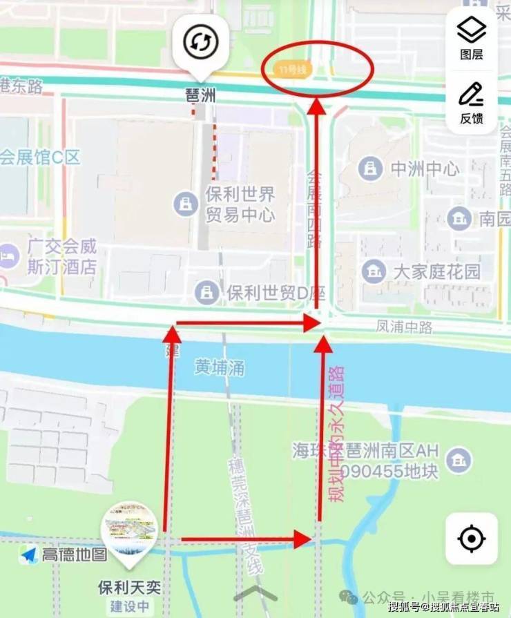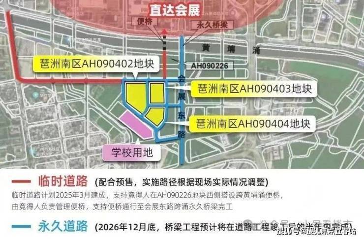 东侧规划中的永久道路,地块周边一共涉及7条,计划2026年约四季度建成,其中最关键的是附近的会展东路,可直达广交会展馆,又可串联新港东路、阅江路等,便捷通往珠江新城、金融城,后续永久道路建成,从项目开车去琶洲,仅4公里距离,基本20分钟内即可抵达琶洲,去珠城的话大概10公里左右,开车半小时。