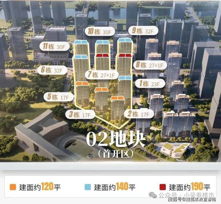 项目预计月首开地块,有三种户型,分别是120-140-190平四房,目前准备加推首开地块最后2栋楼,6-11栋,户型图如下: