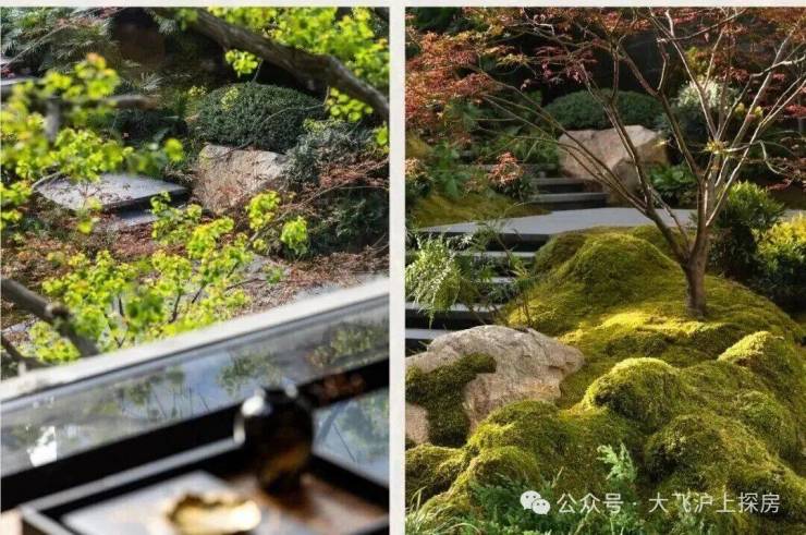 而最令人惊艳的,当属约6米地势差打造的下沉式山水庭院,山、石、水、林有序交织,犹如一幅“豁然开朗山水轴卷,每一步皆是景致,每一处皆有不同。