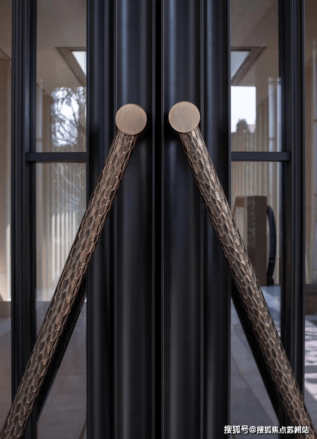 从宏观设计到微观细节,中興傲舍将艺术美学贯彻始终:会所大门以和平饭店旋转门为灵感,经20余位工匠耗时45天纯手工打造的铜制旋转门,厚重质感与艺术气息扑面而来。