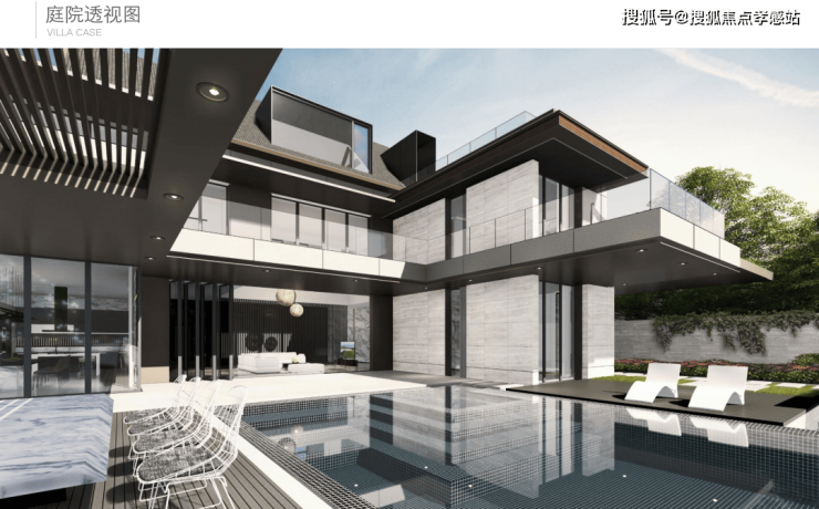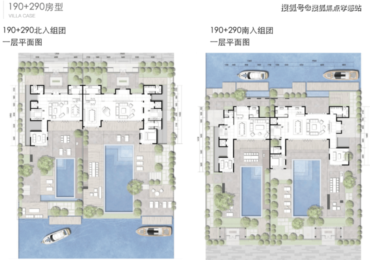 北入户的190+290房型,一层朝南直面庭院和泳池,如果配上整扇的落地玻璃移门......