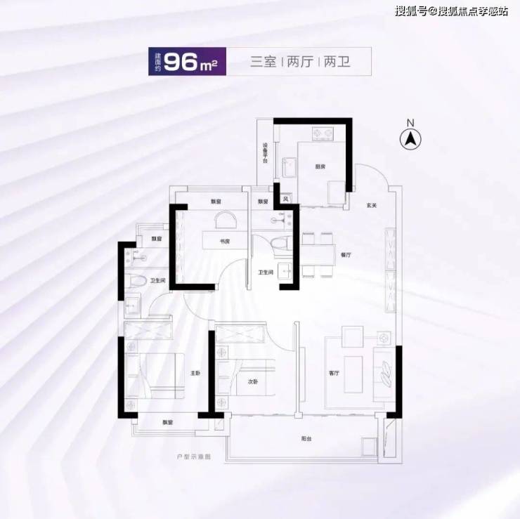 建面约96m²3房2厅2卫