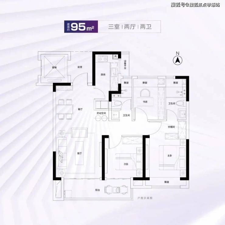 建面约95m²3房2厅2卫