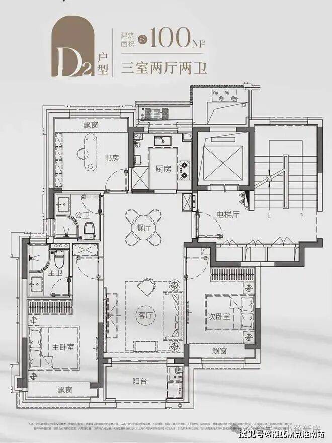 另一套建面约100㎡飞机户型 ,同样做了三房两卫,户型方正,几乎无过道设计,每一寸空间都没有浪费,舒适不局促。