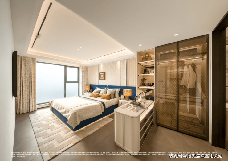 108户型主卧,连通阳台后,整体空间感媲美130㎡大三房的主卧尺度,在放置1.8米大床+双床头柜后,还能定制一个大尺寸L型衣柜。