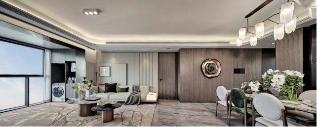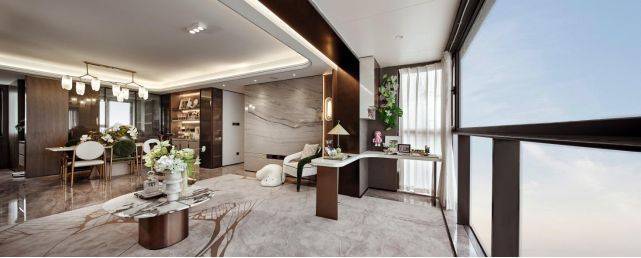 LDKB一体化的设计,将客餐厅、厨房融为一体,打破空间便捷的同时,尽可能地提升公区的空间使用率,✅✅保利海上瑧悦售楼处电话:400-8787-740✅✅尺度感超强,可轻松承载会客、家庭聚会、生日派对等场景。