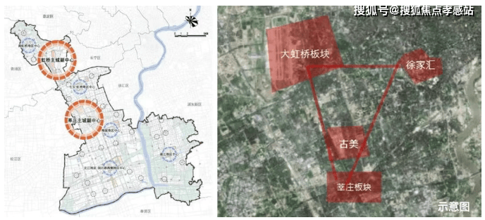 横跨中环线,部分地块位于中环内,紧邻西郊、古北、漕河泾、徐家汇、虹桥。
