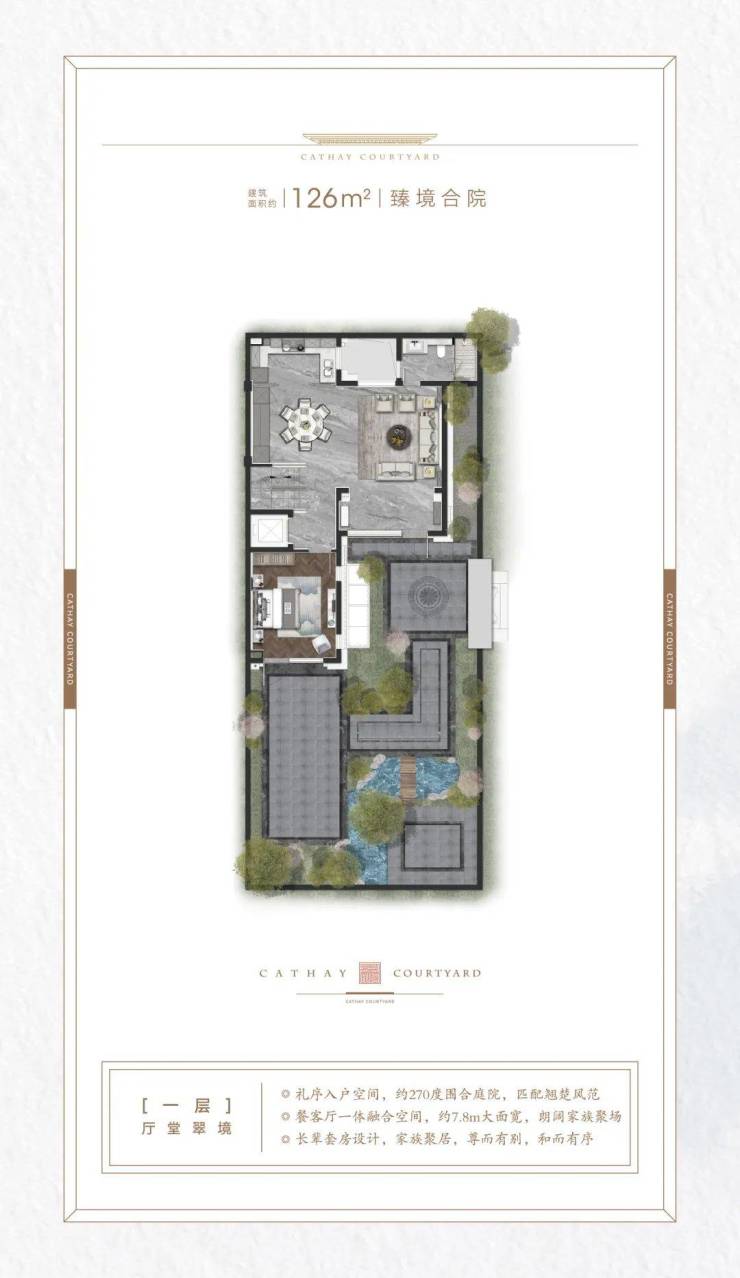 【泰禾·海上院子】以院落空间为中心,270°三面环绕,围合式布局,自然恣意流淌,花木繁盛,有序共生,形成动静皆风景的多重私享。