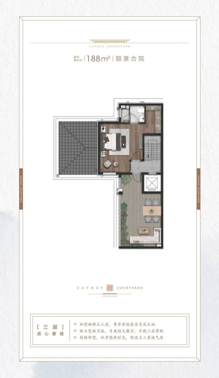 【泰禾·海上院子】设计之初便以传世宅邸为蓝图,立足房间布局、阔绰尺度、楼层分隔、功能分区等考量,匠造符合几代人需求的人性化空间。“垂直分区、代际分层”,在一层一世界的境域里,让三代人甚至四代人,有适度的边界感、彼此的舒适圈,既能和谐共处,又能自在独处。