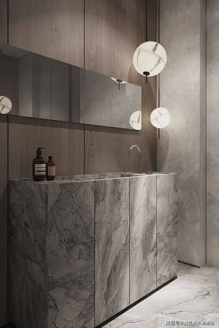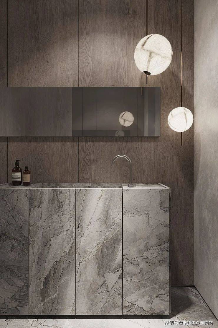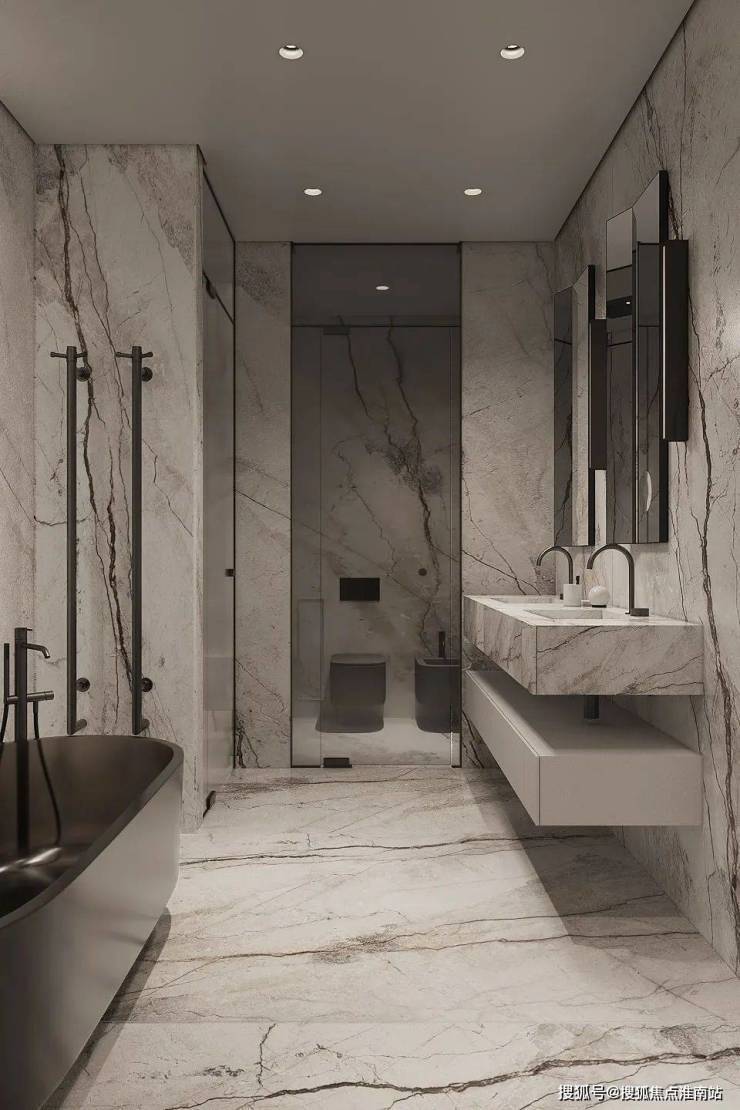 The marble bathroom exudes a light luxury texture, and the simple mirror surface brings a profound effect. The black bathing facilities are quiet and elegant, and the hidden light strip opens up romance.