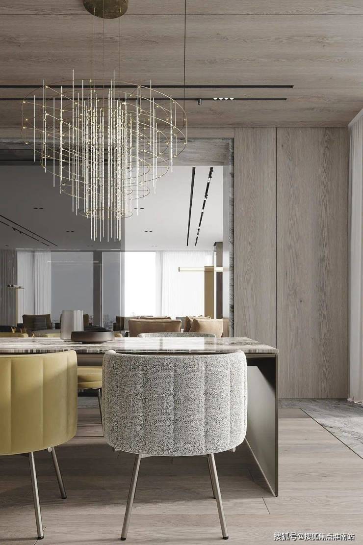 LDKB一体化+长桌岛台设计:大尺度空间感满满,优雅时尚的长桌岛台设计,可以是料理空间,可以放置收纳家居好物,也可以打造成一个小吧台,彰显生活品味。