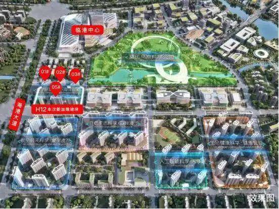 从位置图可以看到,新推独角兽住宅位于103板块顶科中芯,海港大道门户之上,是103核芯之中的核芯。与莫比乌斯科学公园、T2中运量美人蕉站、临港中心等城市级配套资源更近。同时也在整个社区的核芯位置,楼间距更大(部分楼栋),瞰景体验良好。