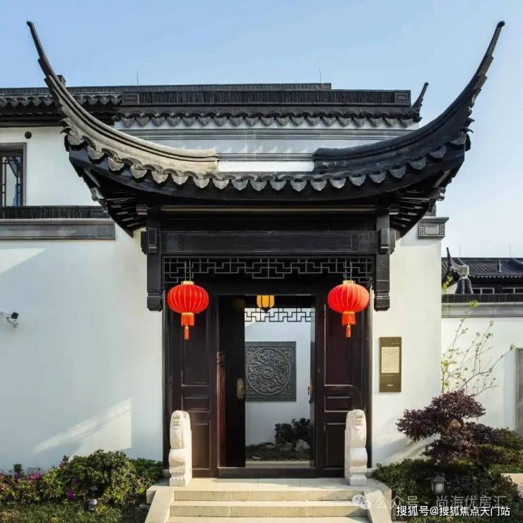 门前一对 抱鼓石,推开铜环双开门就是家。 滴水檐瓦,全依古法,还原每一个繁复的构件。