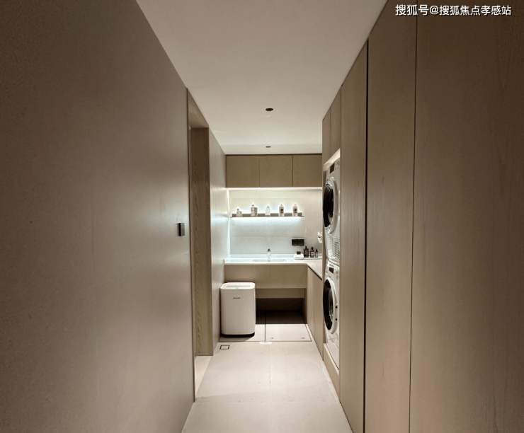 靠户型东侧,样板间设计了一个独立衣帽间和主卧套房的第二个卫浴空间。