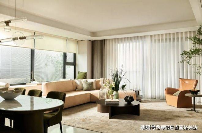 比如,缦云上海的主力层高为3.3米,比市面上的高端住宅高出20-40公分,再配上客厅吊顶采用圆弧设计,让整体空间更圆润更温和,立体空间感更强,视觉上也更宽敞通透。