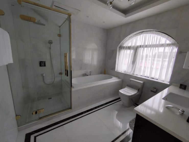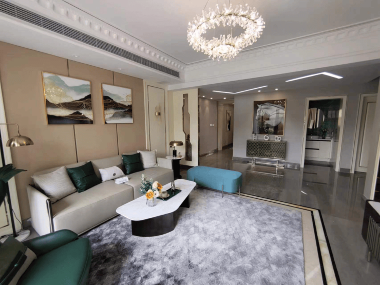 小区建筑设计以简欧风格为主,外墙干挂大理石,整体是浅米黄色调。四周采用铝合金断桥双层中空玻璃采光窗装饰和庄重石柱,为别墅的豪气程度增添色彩。样板房室内装修为轻奢和简欧混搭风格,自带高级感的设计元素彰显了住户的气质。(结构形式采用砖混结构,优点是保温隔热效果好,缺点是整体性较差,不能擅自拆改墙体。)