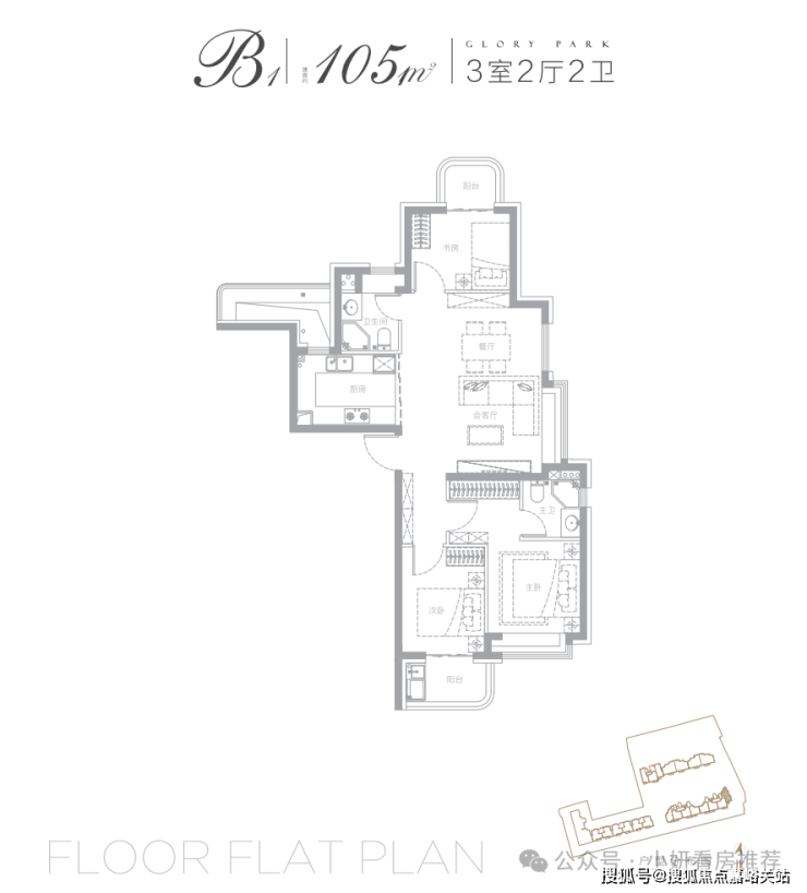 另外,一个优秀户型应该有的设计,包括入户玄关、3间卧室带飘窗、约270度采光面阳台、卫浴干湿分离...这个户型全部具备。