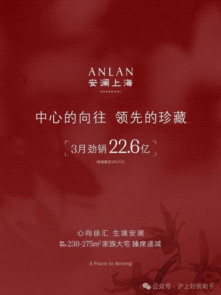 3月,安澜上海劲销22.6亿,以断层式领先优势,成为上海顶豪市场当之无愧的风向标。
