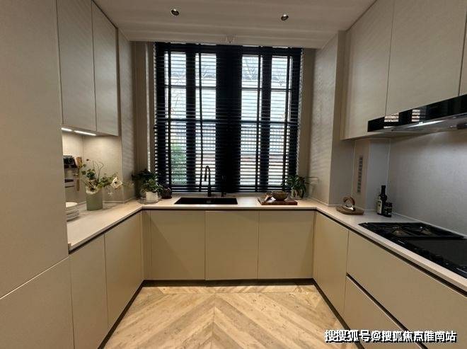 整体一层空间的东南方向,样板间设计为了茶室,配合西向落地玻璃窗,同样正对庭院。