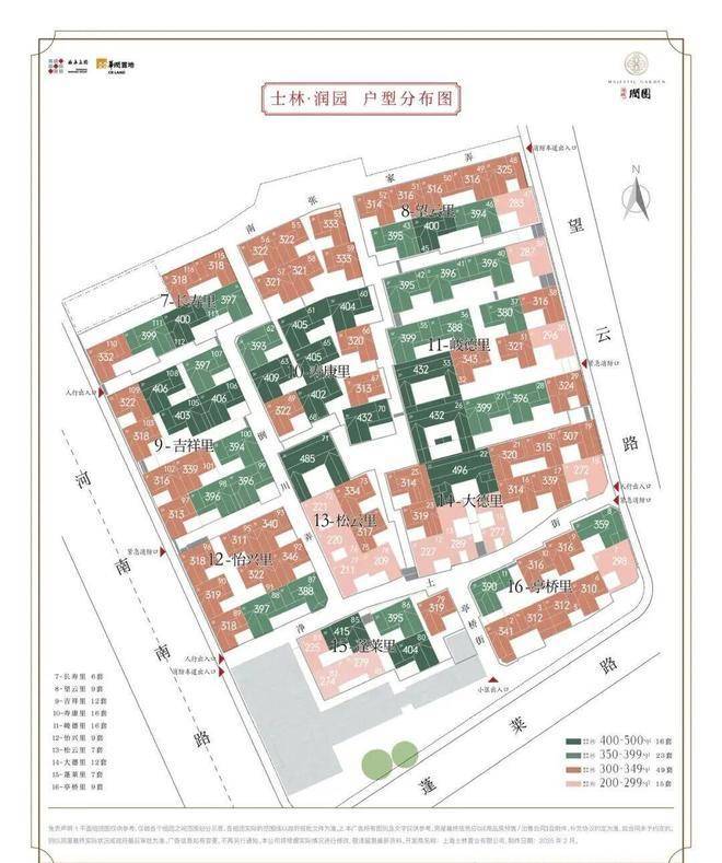 士林润园售楼处电话:400-9699-334✨【官方认证】✅✅✅社区规划可分为蓬莱路城市公共景观以及社区内部景观两个部分,其中市政绿地衔接于上海2035城市总体规划中“蓝绿丝带”的上位条件要求,社区内部街巷空间形成空间序列形成递进的层次,将归家体验的序列依次展开,形成城市街道→入口(一级门户)→街巷→节点空间→里弄门(二级门户)→合院入户(三级门户)的方式,基本可保证大多数住户可体验到两重以上的空间递进。