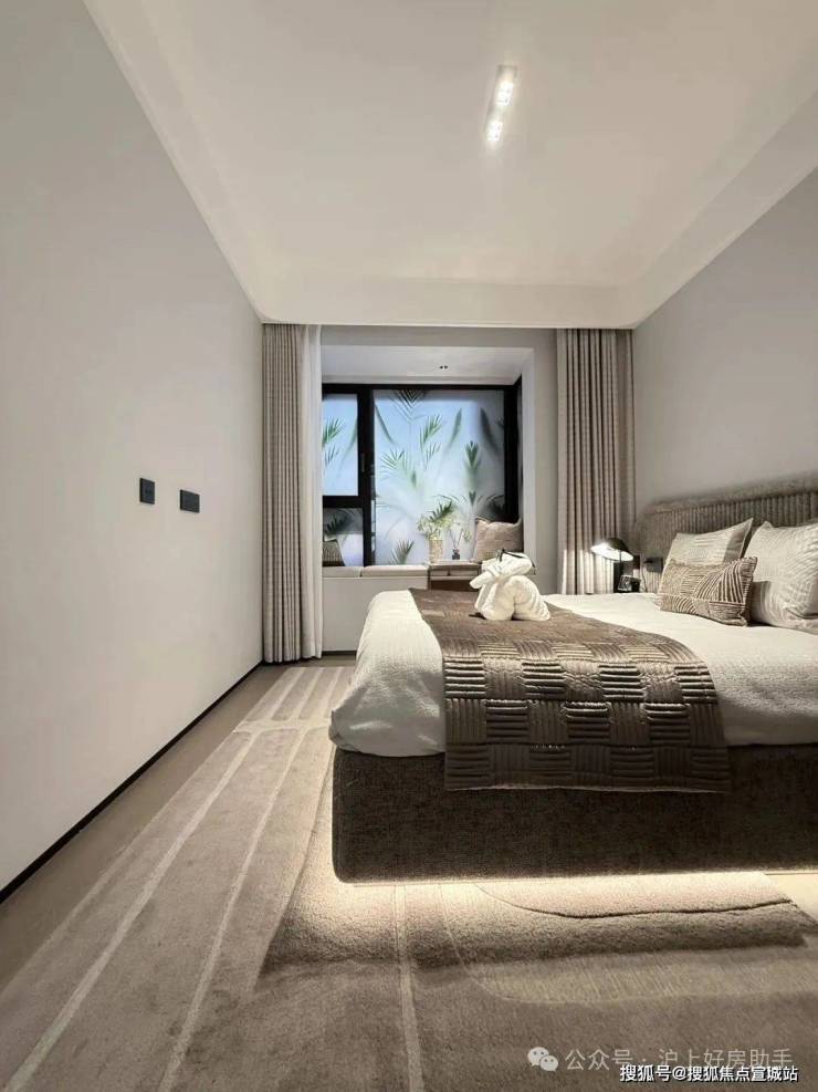 在今年上半年大家都在卷人字拼地板的基础上,外滩源著主卧地板升级为柳叶拼接,进一步做了升级: