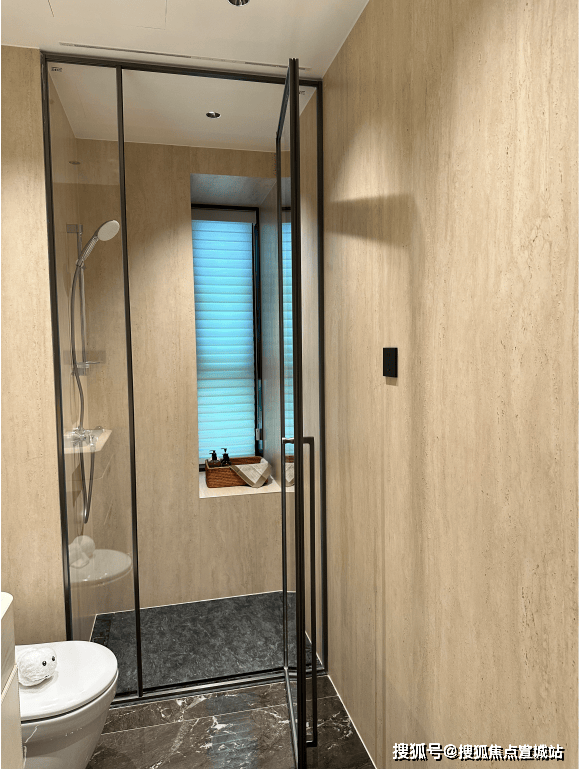 次卫则是采用不同风格,墙面统一采用米洞岩板、地面为深咖色瓷砖,黑金配色风格区别于看多了的海派设计,眼前一亮: