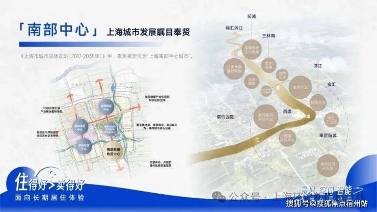 《上海市城市总体规划﹙2017-2035年﹚》中, 奉贤被定位为“上海南部中心城市”。以东方美谷和数字江海国际化产业园区,打造全国领先的产业集群,规划建设有约2.53平方公里“上海之鱼”、约32公里“十字水街”岸线、全长约50公里田字绿廊,形成“国家生态园林城区”