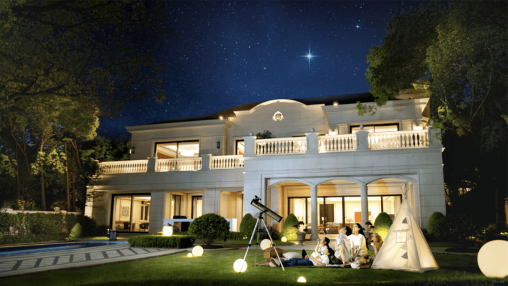 仰望星空,城市的光华在不远处闪耀,而翡梵社区内一片安宁祥和。