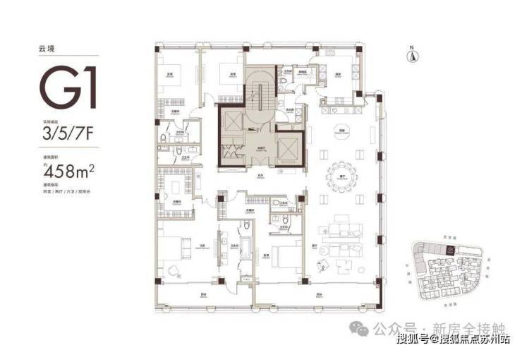 南向客厅灵动分区,双采光庭院引光入室,多卫设计便捷舒适。