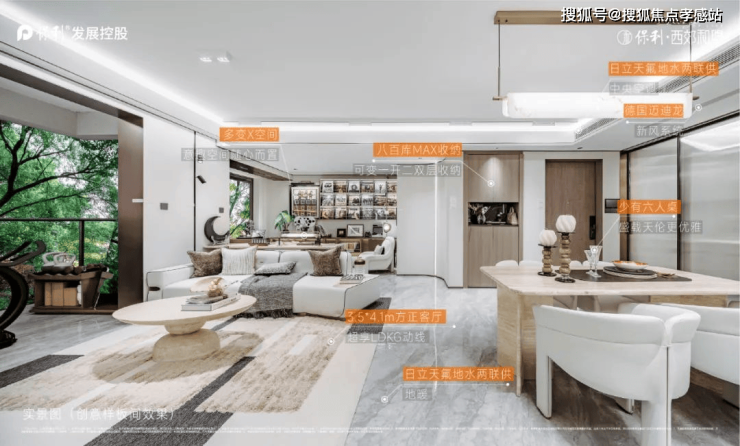 【保利西郊和煦官方售楼处电话:400-1010-064✨✨】全墙纸交标结合整幅岩板客厅景墙,以定制设计感提升空间立体感。