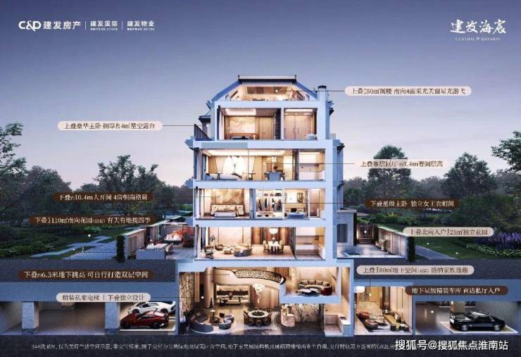 建面约235㎡上叠,则为三代同堂的家庭提供了解决方案。北向首层私享建面约25㎡的入户花园;上叠三层以无界厅堂为核心,约10.4米开间让光线无遮挡漫入;上叠四层三间卧室均朝南,实现全明采光;与市场常规上叠不同,建发海宸上叠拥有建面约80㎡地下空间(双层)与建面约50㎡私家阁楼,真正实现“空间超越面积”的价值升华。