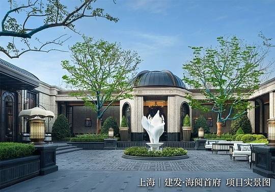 建发海阅首府融合海派文化与现代科技,外立面采用钻石绿石材与金属线条,复刻外滩汇丰银行大楼风格,10米挑高大门搭配彩色玻璃穹顶,彰显奢华质感。社区园林以“两轴、十园”为主题,复刻上海爱神花园、兰心大戏院等经典景观,打造四季有景的沉浸式园林体验。项目全系搭载五恒科技系统,即恒温、恒湿、恒氧、恒静、恒洁,结合三玻两腔隔音玻璃、地暖、中央空调等,打造健康舒适的居住环境。