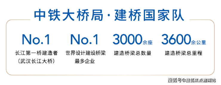 中铁大桥局集团前身为1953年修建万里长江第一桥“武汉长江大桥”经政务院批准成立的铁道部大桥局,是中国桥梁事业的领军者,是世界上设计桥梁最多的企业,中国“一带一路”走向世界的“建桥国家队”。在世界范围内建造桥梁总数超过3000座,建造桥梁总里程超过3600余公里,建桥技术国际领先。近70年来,公司曾先后参与建设了杭州湾跨海大桥、东海大桥、港珠澳大桥、武汉长江大桥、南京长江大桥等一系列知名桥梁,一直引领着中国桥梁事业发展方向,以建桥的心志去建造住宅。