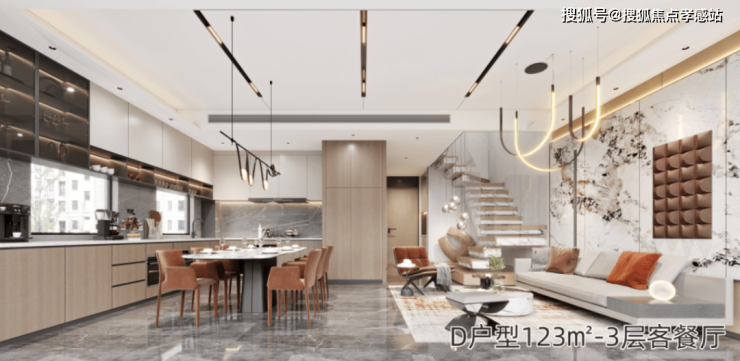 约123平上叠3房户型,共上下两层,全明设计,格局开阔,宽景阳台,上承天空,下承生活。