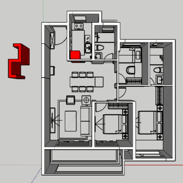 其中,餐厨系统的进阶不只在于橱柜、拉蓝等细节的收纳,更在于映江润府引入创新的S墙,可以轻松将冰箱移出厨房,同时保证视觉效果的整体性。