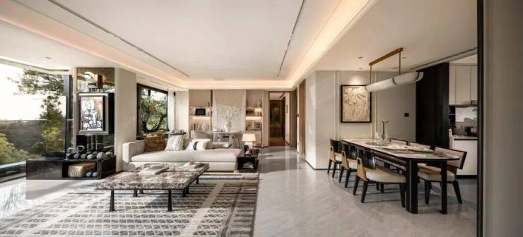 室内空间:引入了全屋智能家居系统,能通过App、中控、语音三大方式,调节全屋智能家居,包括客厅灯光、空调、地暖、新风、客厅和主卧窗帘等场景。