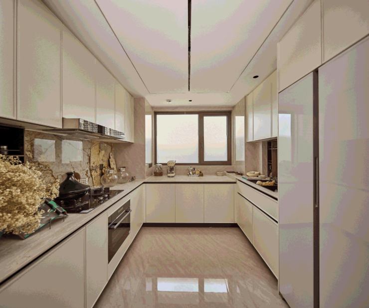 譬如说部分柜体更安全的圆角处理、高柜顶部一窥到底的镜面反光膜、大大提高空间利用的薄抽,不用弯腰一踢即开的踢脚抽设计,便利性大大增加;每一个细节都充分考虑到了未来居住的舒适性,这种产品颗粒度真的令人惊艳!