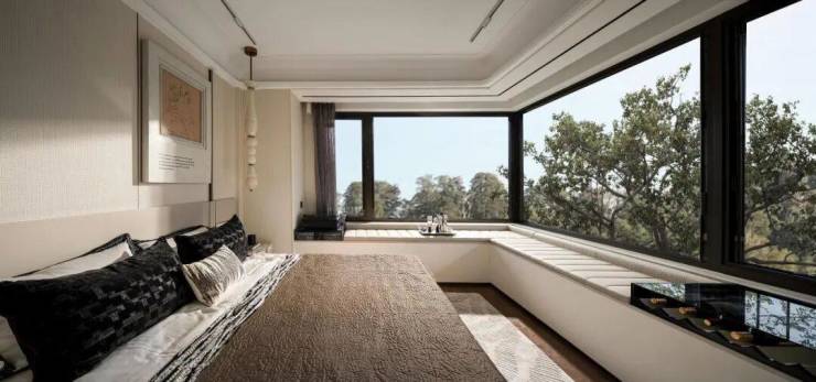 项目大量使用奢石设计,客厅四边弧形天花、主卧树叶拼花地板、精致优雅的骨骼线设计,都是开发商花费更大成本和耗材去呈现更美的视觉体验。