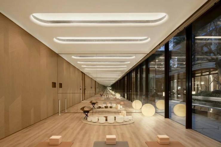 瑜伽室内嵌七组定制音钵,匹配当下音疗的疗愈趋势,通过多元化、国际化的功能带给业主更便捷、更丰富、更松弛的日常体验。