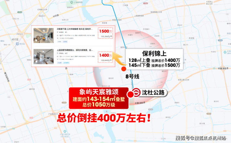 据链家网显示,项目旁边类似的轨交墅保利锦上项目,二手的上叠要1400万,下叠要1500万!