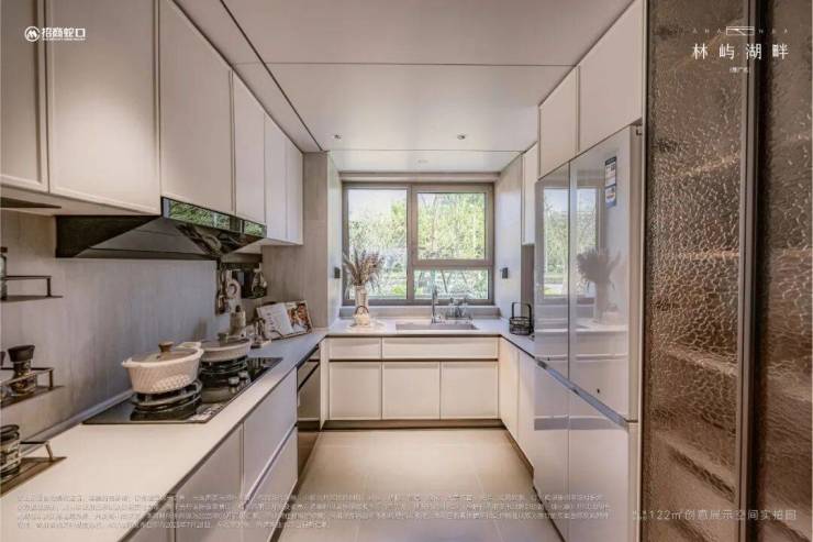 LDK一体化巨厅,U型厨房布局,大气操作台台面,预留好了双开门冰箱和餐边柜位置,实用性拉满。【招商·林屿湖畔售楼热线】✔✔✔营销中心热线☎400-9955-415☎️☎️✅✅✅售楼处地址☎400-9955-415☎️☎️✅✅✅