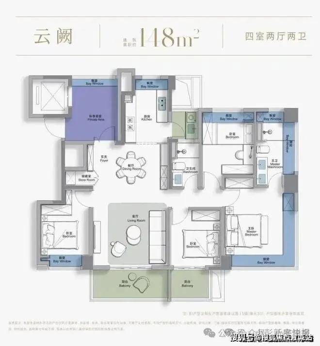 建面约148㎡户型则以更恢弘的尺度重新定义改善型住宅的天花板