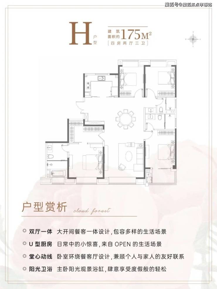 建面约175㎡4房3卫,几乎是上海改善的终点户型。